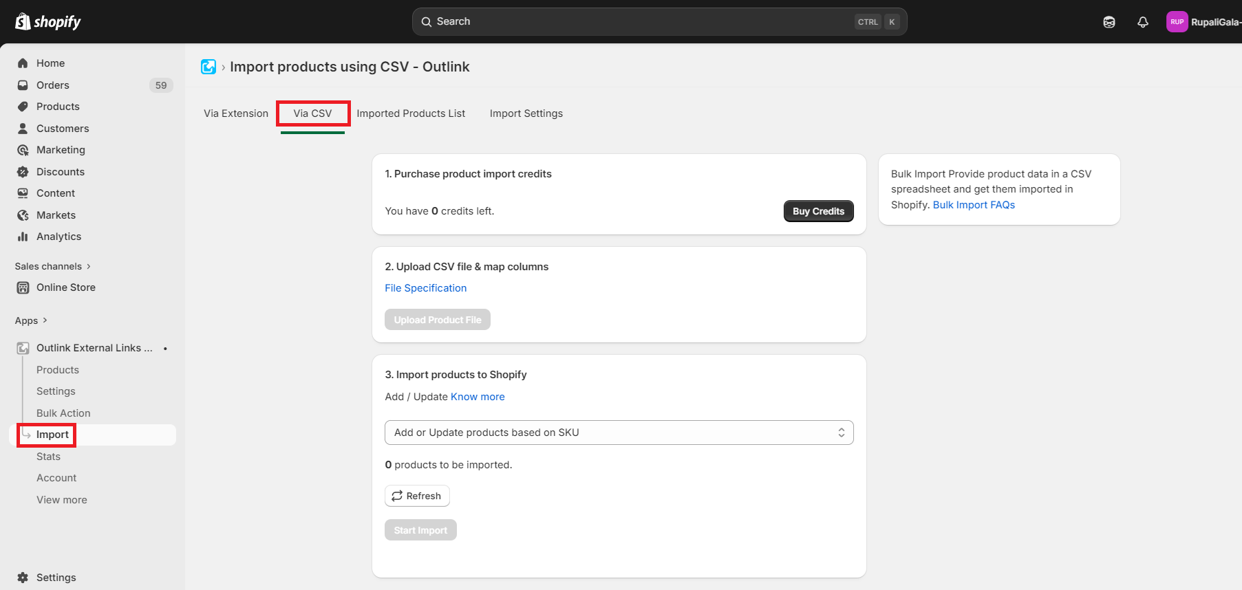 The app can be used to import/update products in bulk via CSV. Outlinks can be attached when adding/updating products via CSV. This saves a lot of time in manually adding the product to Shopify and attaching Outlinks.