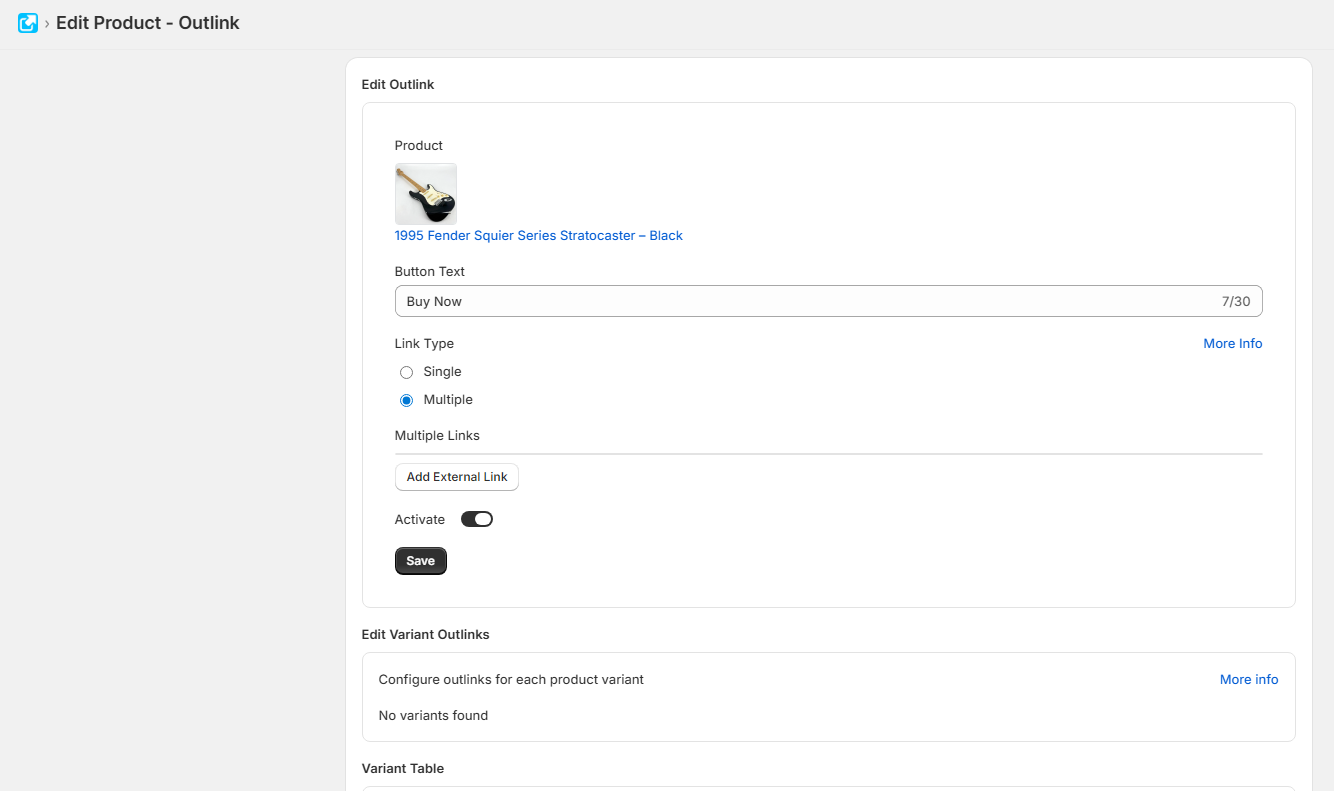 After installing Outlink follow the steps below to add external / affiliate links to any product on your site: